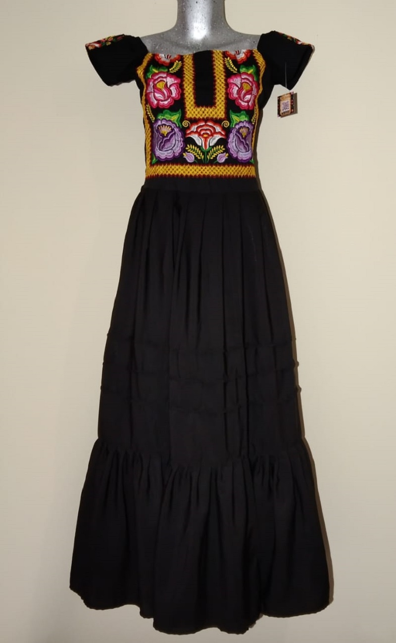 Home Tienda Vestidos tipicos Vestido negro con bordado de cadenilla y flores